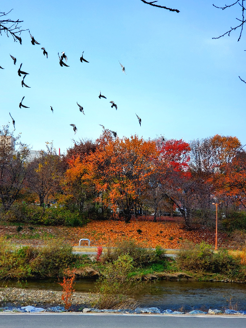 스마트폰을 들고 나갔다. 마지막으로 불타는 가을 나무에 촛점을 맞추는데